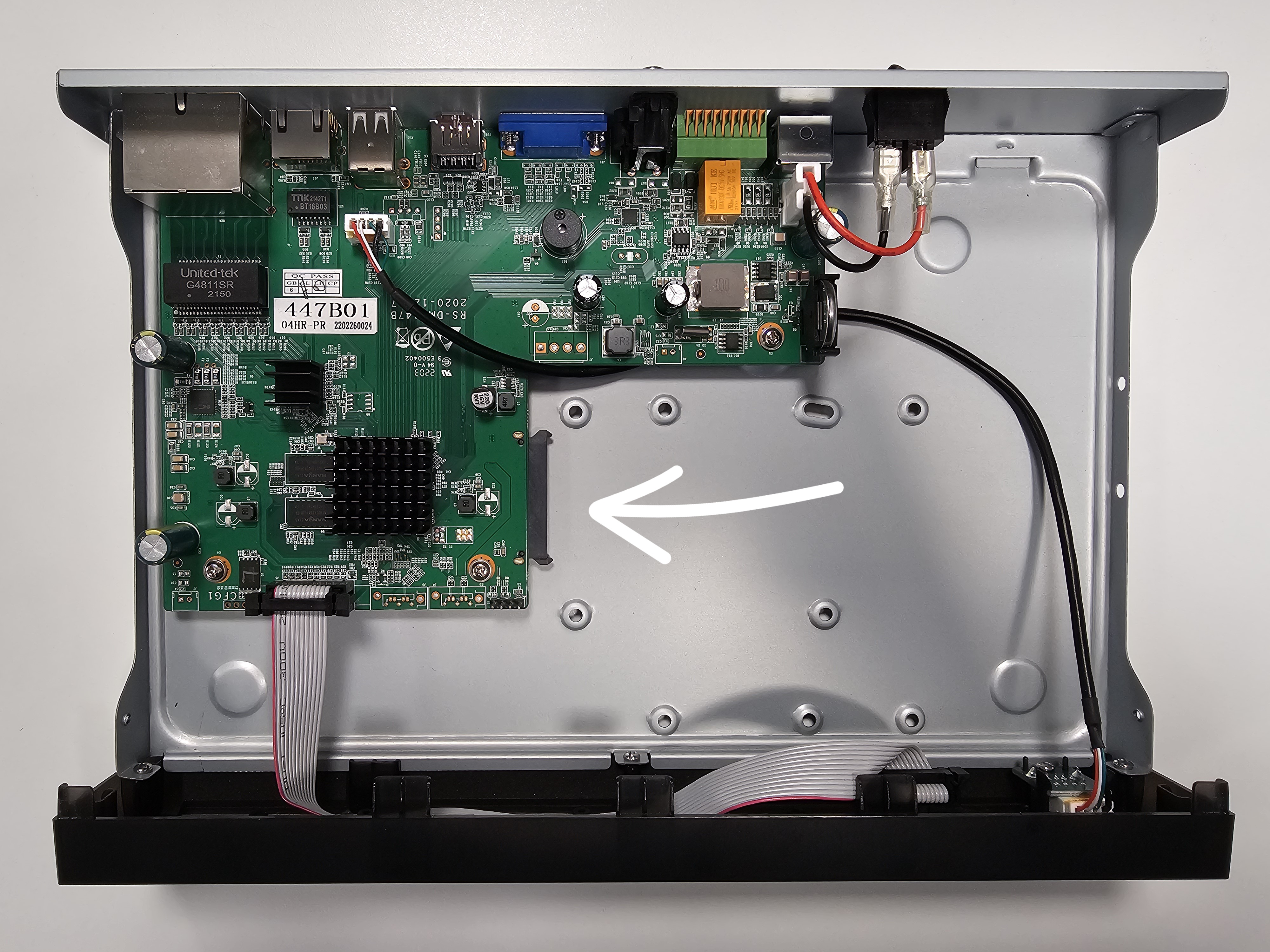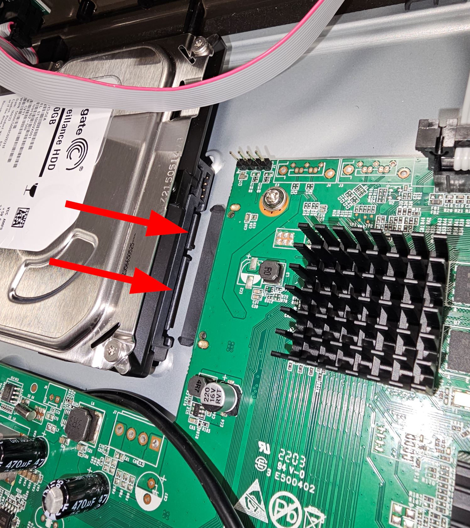 Le disque dur se branche en clipsant sur la carte interne directement, il n'y a pas de cordon.