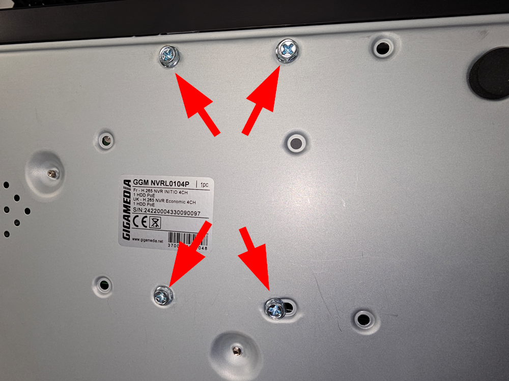 Utiliser la visserie fournie avec l'enregistreur ou le disque dur.
