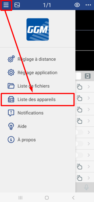 2) Accédez au menu (en haut à gauche) puis Liste des appareils