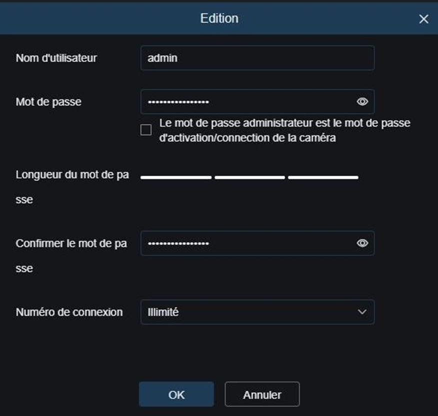- polje "Geslo / Potrdi": s preverjanjem ga uporabiš geslo tega računa (samo skrbniški račun) na že dodane kamere.