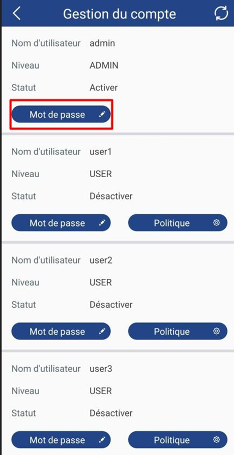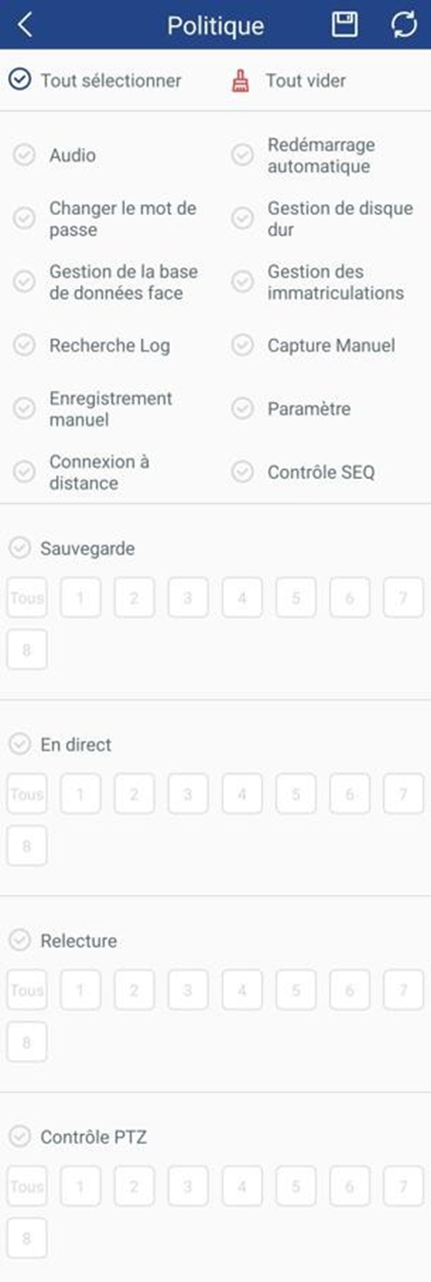 Uporabnik na ravni skrbnika ima polne pravice in ga ni mogoče spremeniti. Ta vmesnik vam omogoča, da določite, kdo bo imel dostop do različnih funkcij (parametrizacija, ponovitev itd.).